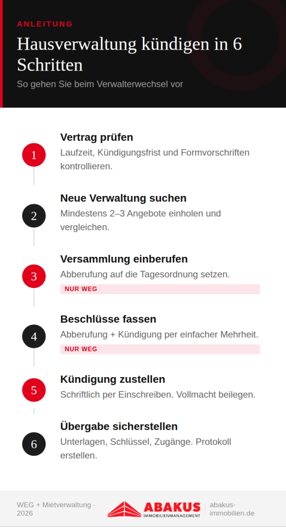 Hausverwaltung kündigen: Anleitung für Eigentümer (2026)